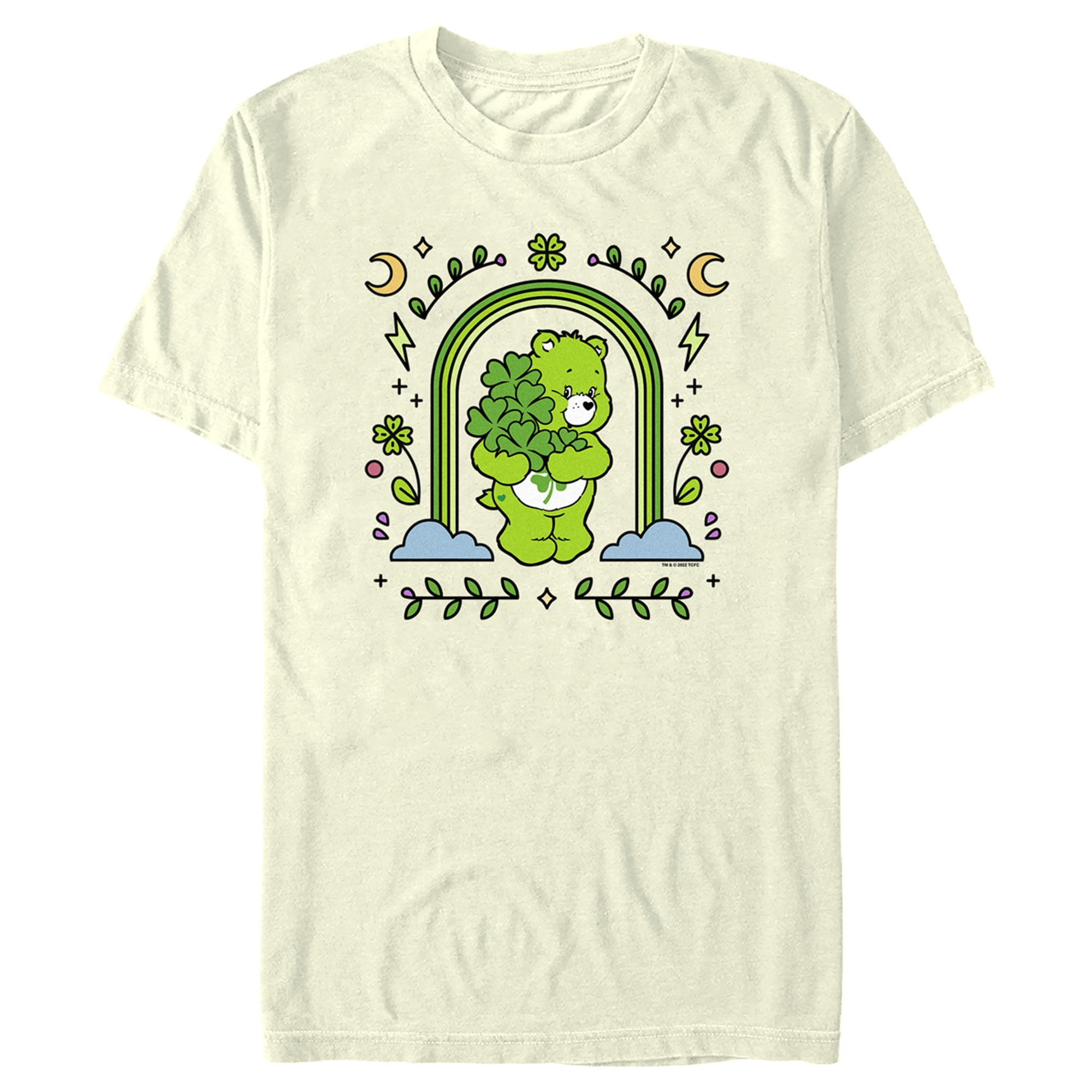 Men S Care Bears St Patrick S Day Good Luck Bear Green Rainbow Arch Graphic Tee Beige 3x Large Walmart Com